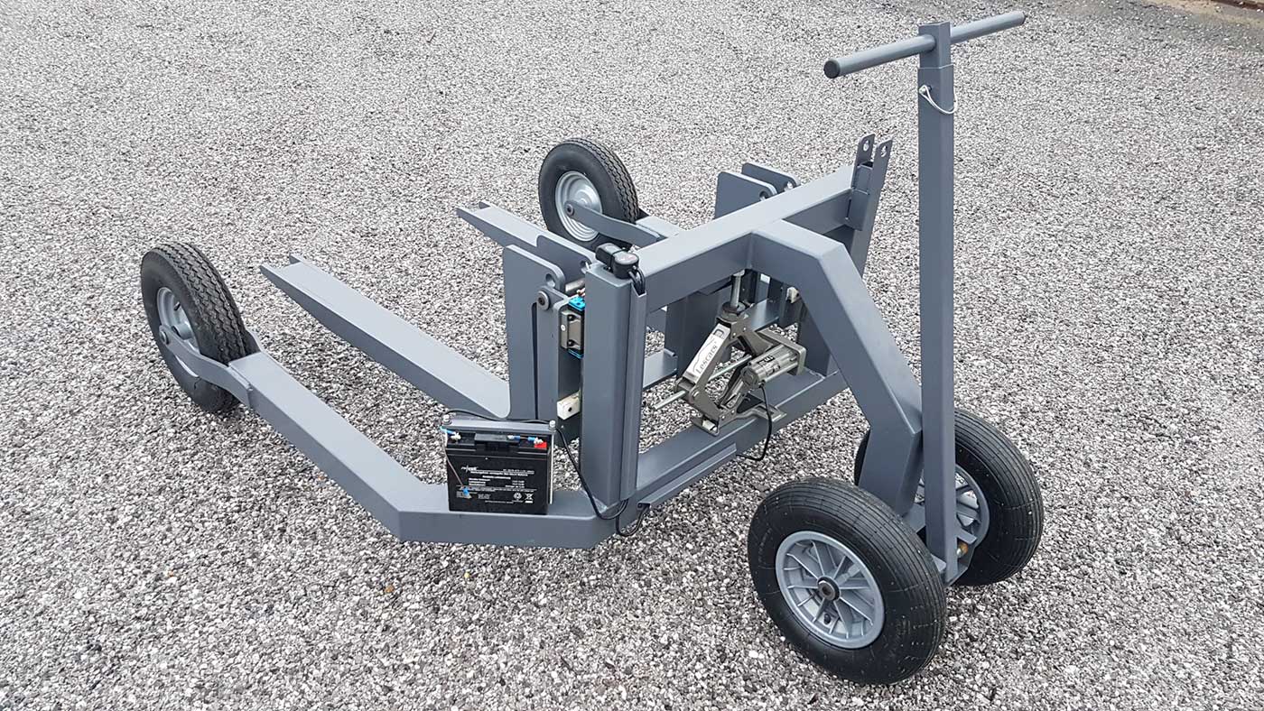 Véritable alternative au tracteur ou au chariot élévateur, il permet de déplacer des caisses de différents formats sur des terrains carrossables : allées, pelouses, terrasses.